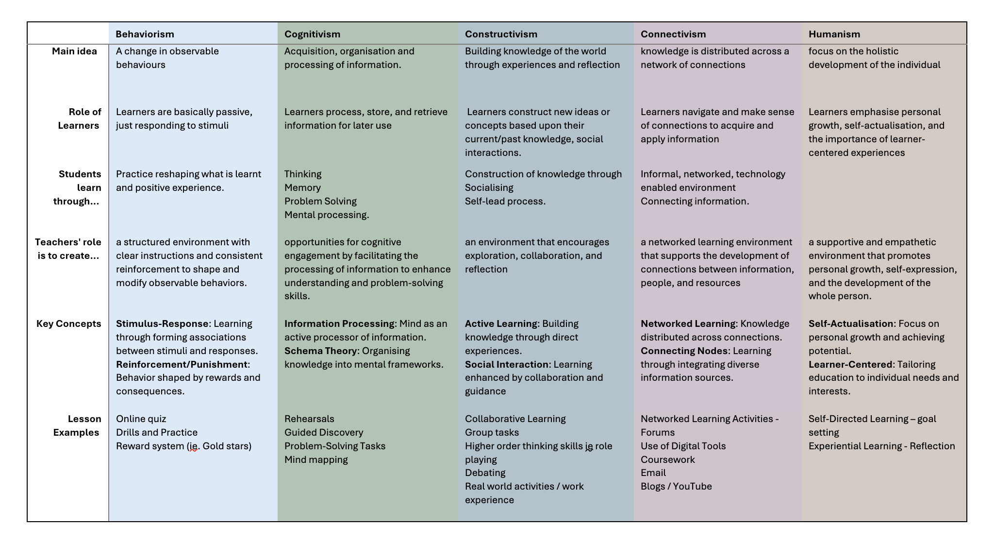Subject Learning Outcome: “Define, analyse and interpret a range of contemporary educational theories and principles of learning and teaching”